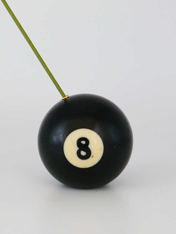 당구장에서 보낸 치열한 움직임으로 인해  자연스럽게 만들어진 흔적 (스크래치, 미세 점등)이 담긴 포켓볼로 제작한 인센스 홀더 혹은 문진 오브제입니다.