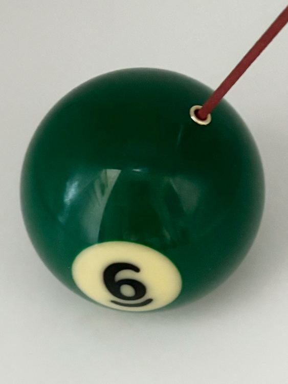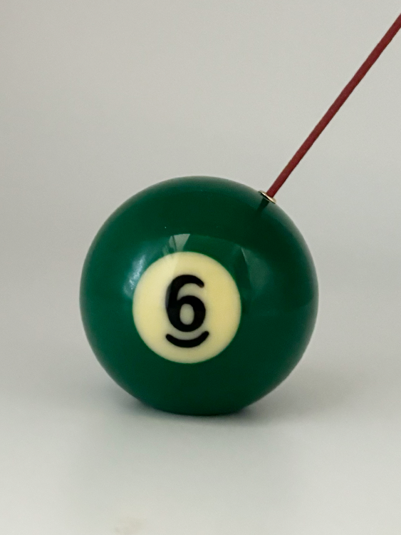 당구장에서 보낸 치열한 움직임으로 인해 자연스럽게 만들어진 흔적 (스크래치, 미세 점등)이 담긴 포켓볼로 제작한 인센스 홀더 혹은 문진 오브제입니다.
