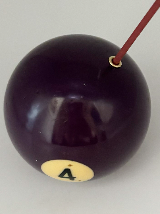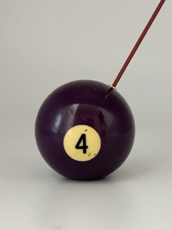 당구장에서 보낸 치열한 움직임으로 인해 자연스럽게 만들어진 흔적 (스크래치, 미세 점등)이 담긴 포켓볼로 제작한 인센스 홀더 혹은 문진 오브제입니다.