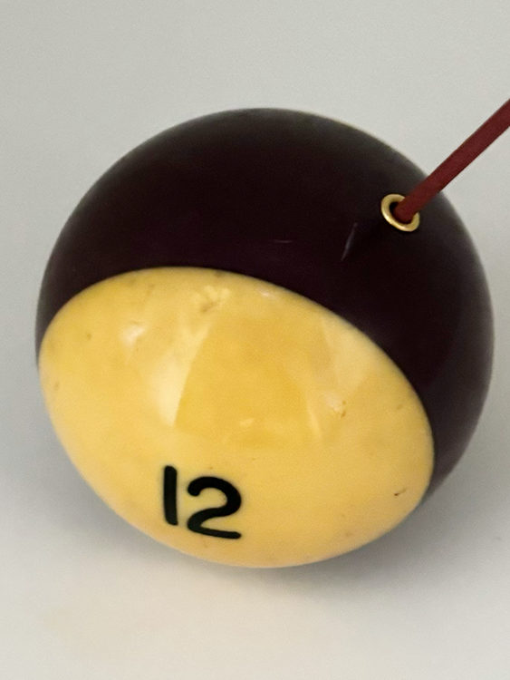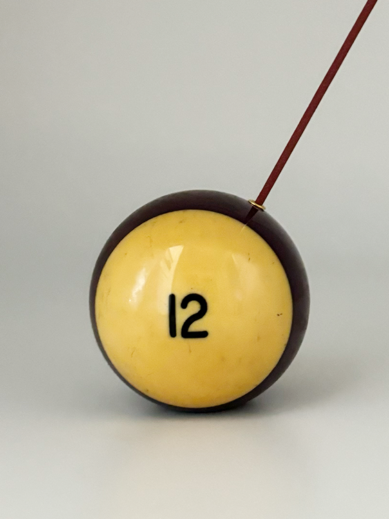 당구장에서 보낸 치열한 움직임으로 인해 자연스럽게 만들어진 흔적 (스크래치, 미세 점등)이 담긴 포켓볼로 제작한 인센스 홀더 혹은 문진 오브제입니다.