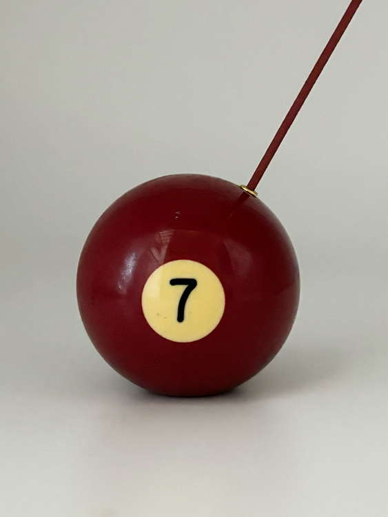 당구장에서 보낸 치열한 움직임으로 인해 자연스럽게 만들어진 흔적 (스크래치, 미세 점등)이 담긴 포켓볼로 제작한 인센스 홀더 혹은 문진 오브제입니다.
