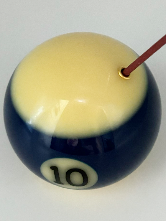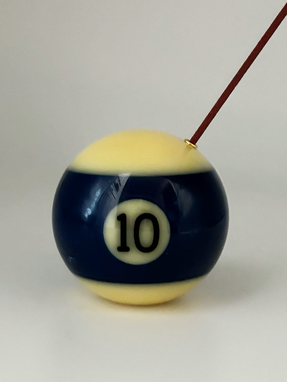 당구장에서 보낸 치열한 움직임으로 인해 자연스럽게 만들어진 흔적 (스크래치, 미세 점등)이 담긴 포켓볼로 제작한 인센스 홀더 혹은 문진 오브제입니다.