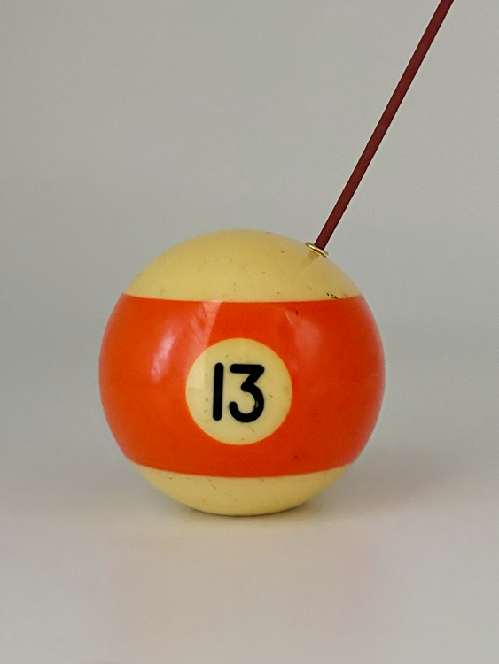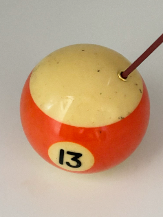 당구장에서 보낸 치열한 움직임으로 인해 자연스럽게 만들어진 흔적 (스크래치, 미세 점등)이 담긴 포켓볼로 제작한 인센스 홀더 혹은 문진 오브제입니다.