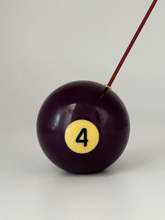 당구장에서 보낸 치열한 움직임으로 인해 자연스럽게 만들어진 흔적 (스크래치, 미세 점등)이 담긴 포켓볼로 제작한 인센스 홀더 혹은 문진 오브제입니다.