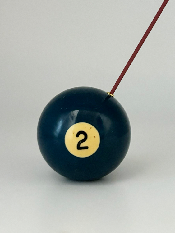 당구장에서 보낸 치열한 움직임으로 인해 자연스럽게 만들어진 흔적 (스크래치, 미세 점등)이 담긴 포켓볼로 제작한 인센스 홀더 혹은 문진 오브제입니다.