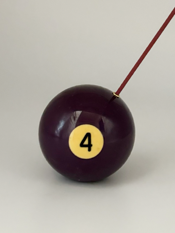 당구장에서 보낸 치열한 움직임으로 인해 자연스럽게 만들어진 흔적 (스크래치, 미세 점등)이 담긴 포켓볼로 제작한 인센스 홀더 혹은 문진 오브제입니다.
